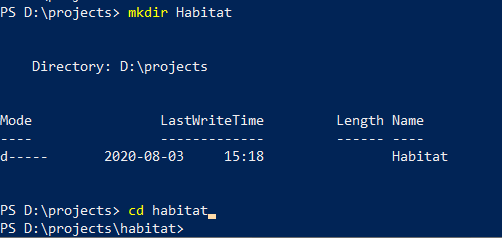 Ouvrez une fenêtre Powershell en tant qu’administrateur. Créez un nouveau dossier, par exemple “Habitat”.
