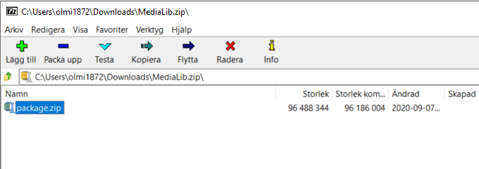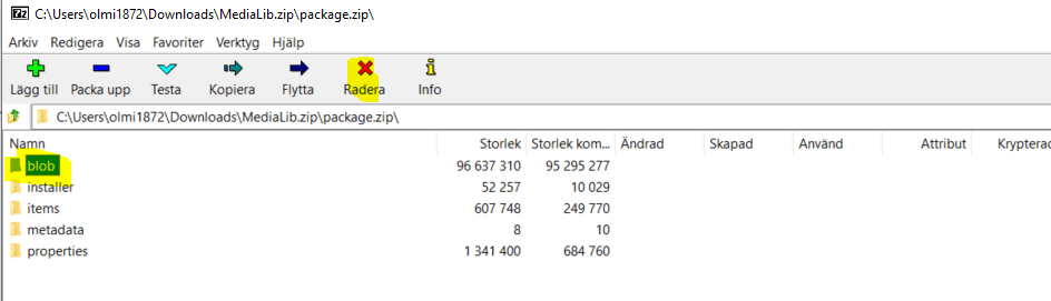 The media package actually includes binaries (blobs) for all the media files. We don’t need them in this form, as we are going to migrate those files programmatically from an Azure Storage to another one. Using a zip tool (I use 7-zip), open the package and remove the folder blob. The new media package will also be much smaller, and thus faster to install.